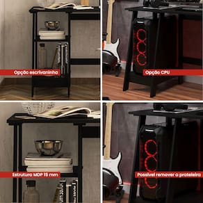 Ideal para otimizar seu espaço com design contemporâneo, esta Mesa Escrivaninha Gamer oferece uma prateleira removível que pode ser ajustada ou retirada para acomodar equipamentos maiores ou criar um espaço mais amplo para suas atividades. Produzida em MDP, esta peça combina durabilidade e estilo, proporcionando um ambiente sofisticado e prático. A escolha perfeita para maximizar seu desempenho. Este móvel chegará em sua casa separado em 01 volume.