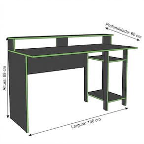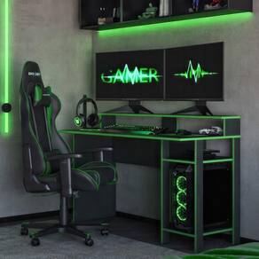 Maximize sua experiência de jogo com a Mesa Gamer Mademovel Linha Vulcano, projetada para quem busca desempenho, organização e um visual gamer marcante. Com design moderno na cor vulcano e bordas verdes, ela transforma seu setup em um ambiente imersivo, funcional e competitivo.