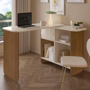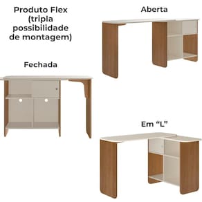 Mesa Escrivaninha estilo clean, prática e versátil ideal para ambientes compactos. Com tampo rotativo em 180 que proporciona tripla possibilidade de montagem: Fechada, aberta ou em formato L, tornando-o um produto . Possui 4 nichos organizadores, 1 porta de correr com perfil e puxador plástico, cantos arredondados que oferecem um visual harmônico ao ambiente. Móvel com estrutura em MDP/MDF de 15mm e acabamento em pintura UV (fosco e alto brilho). Este móvel será entregue em sua casa separado em 01 volume.