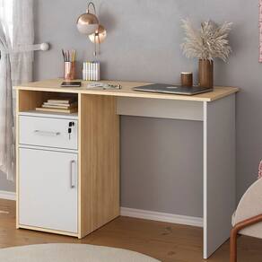 Descubra a harmonia perfeita entre estilo e funcionalidade com a Mesa Escrivaninha Home Office 110cm Ally A06 Carvalho/Branco, da Mpozenato!