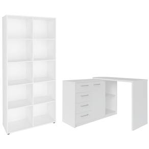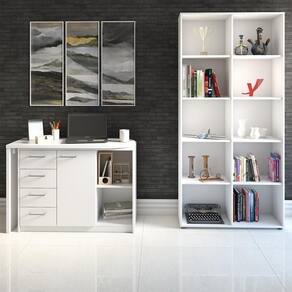 A Mesa Escrivaninha Lagan e Estante Livreiro 90x187cm Lean A06 Branco, da Mpozenato, é a dupla perfeita para criar o seu home office.