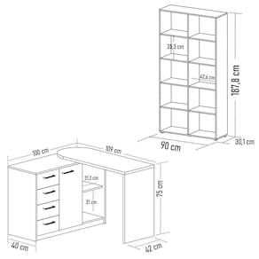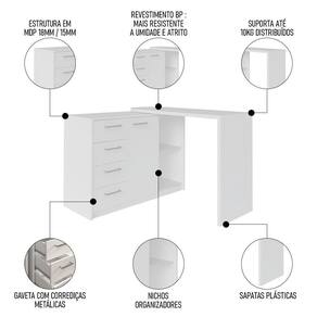 Com um design moderno e funcional, essa mesa em L conta com porta, gavetas e, ainda, um tampo móvel que quando aberto forma o design em L. Além disso, a estante livreiro com 10 nichos espaçosos é ideal para armazenar seus livros, documentos e objetos de decoração. Já a estrutura é resistente, durável e garante a estabilidade necessária para o seu trabalho diário. Em outras palavras, proporciona praticidade e organização ao seu ambiente de trabalho. Seja produtivo e mantenha tudo ao seu alcance com essa mesa para home office e estante.