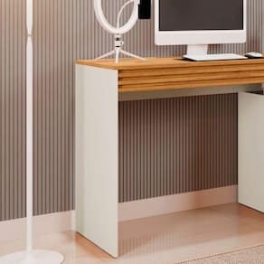 Que tal a mesa Madrid para deixar seu ambiente mais funcional e com aquele toque especial de charme e elegância? Muito versátil, ela traz gaveta com corrediça telescópica, detalhe ripado no tampo e na base da porta, que tem puxador arredondado em bronze, assim como a gaveta. Além de tudo isso, ela possui acabamento na parte traseira, o que possibilita você colocá-la em qualquer lugar, não somente virada para a parede. Esse lançamento incrível está disponível nas cores branco e naturalle e na versão monocromática no tom naturalle.