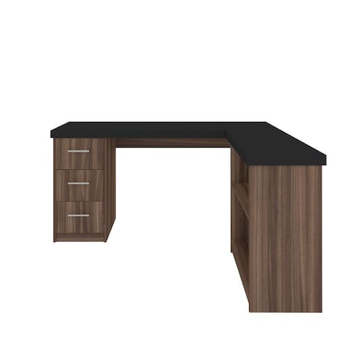 Mesa Escrivaninha para Escritório 3 Gavetas Mali | Artany A Mesa Escrivaninha para Escritório Mali da Artany combina funcionalidade e estilo sofisticado em um design versátil. Com a capacidade de ser montada tanto para o lado esquerdo quanto para o direito, adapta-se perfeitamente a qualquer espaço. Equipada com três gavetas espaçosas e nichos adicionais, é ideal para quem busca uma área de trabalho organizada e esteticamente agradável. Características:\nModelo: Mali Marca: Artany Dimensões: 154 x 116,5 cm (C), 44 x 37,5 cm (P), 75,2 cm (A) Peso: 54 Kg Material: Estrutura em MDP de 15mm, tampo em Tamburato de 50 mm. Acabamento: Fita de borda PVC, acabamento fosco. Gavetas: Três, equipadas com corrediças metálicas e puxadores em PS metalizado. Montagem Flexível: Possibilidade de montagem para o lado direito ou esquerdo.\nBenefícios:\nFlexibilidade de Montagem: Permite ajuste conforme a disposição do seu espaço. Design Elegante: O acabamento fosco e puxadores metalizados adicionam um toque de refinamento. Organização Otimizada: Três gavetas e nichos fornecem amplo espaço para armazenamento de materiais de escritório e pessoais. Versatilidade: Adequada para uso em escritórios, home offices ou até quartos, adaptando-se a diversos estilos de decoração.\nEspecificações:\nCapacidade de Carga: Adequada para suportar materiais de escritório e dispositivos eletrônicos. Montagem: Requer montagem que pode ser feita conforme o manual de instruções incluído. Volume de Entrega: Produto entregue em 2 volumes.\nAvisos:\nVerificação: Antes de finalizar a compra, verifique as dimensões e a cor do produto para garantir que atende às suas necessidades. Decoração: Objetos decorativos mostrados nas imagens não acompanham o produto. Instalação e Manutenção: Para garantir a montagem correta e manutenção adequada, consulte o manual do produto ou contrate um profissional qualificado.\nCompre agora sua Mesa Escrivaninha para Escritório 3 Gavetas Mali | Artany na DoShop, ir as compras nunca foi tão fácil, rápido e seguro! Ideal para quem valoriza tanto a funcionalidade quanto o estilo, a Mesa Escrivaninha Mali da Artany é uma escolha excelente para revitalizar seu espaço de trabalho. Com seu design flexível e prático, facilita a organização e enriquece o ambiente com seu visual elegante e moderno. Transforme seu escritório ou área de estudo com esta peça versátil e de alta qualidade.