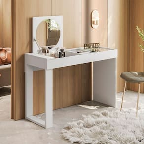 Design multifuncional: funciona como penteadeira e escrivaninha no dia a dia.