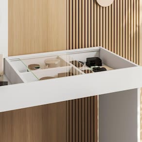 Espelho integrado: facilita a rotina de beleza sem ocupar espaço extra.