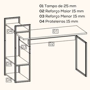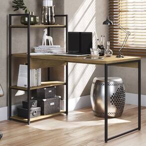 Mesa funcional e moderna, ideal para diversos ambientes! Com 122cm de altura e 136cm de largura, esta mesa oferece três prateleiras laterais, perfeitas para organizar livros, objetos decorativos ou materiais de trabalho. Fabricada em MDP de 15mm semi brilho, metal com acabamento fosco, enquanto a pintura touch proporciona um acabamento sofisticado e elegante. Este móvel chegará em sua casa separado em 01 volume.