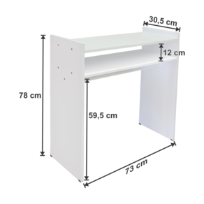 Uma ótima opção de mesa de estudos! Suas prateleiras são espaçosas, facilitando armazenamento de livros e cadernos. Bem como a utilização de um notebook – Perfeita para quarto, sala e escritório! Seu acabamento em alto brilho vai combinar ainda mais com o ambiente. Lembrando que ela possui acabamento em todas as extremidades, podendo ser utilizada em qualquer posição! Pode confiar! Atende todas as suas necessidades, útil até mesmo como um aparador, decorando e se acomodando muito bem os ambientes. Mesa composta 100% de chapas de 15mm de espessura. O móvel foi projetado para gerar muito mais resistência e qualidade. Ficha técnica: - Resistente e Reforçada; - 78 cm de Altura; - 73 cm de Largura; - 30,5 cm de Profundidade; - Todas as chapas com 15mm de espessura. O ÚNICO PRODUTO DO MERCADO COM UM REFORÇO ABAIXO DA SEGUNDA PRATELEIRA! DEIXANDO A PEÇA MUITO MAIS ESTÁVEL E RESISTENTE.