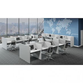 As estações de atendimento e telemarketing são fabricadas com tampos e retaguardas em MDPBP na e variadas cores, pés estruturais com perfis de acabamento nas cores que combinam com seu gosto. As estações possibilitam montagens diversas, propiciando comodidade e produtividade na execução das tarefas diárias, desempenhando importante papel na organização e eficiência de sua empresa. Acabamento dos Pés: Polipropileno Altura dos Pés: 3 Ambiente Principal: Escritório Complexidade da Montagem: Média: pode ser montado por mais de uma pessoa e/ou necessite de maior conhecimento para montagem Cor: Branco Cor do Produto: Branco Cor Interna: Branco Escala de Brilho: Semi-Fosco Formato: Retangular Itens Inclusos: 1 Mesa para Escritório e Manual de Montagem. Linha ou Coleção: Maxxi Manual de Montagem e Instalação: https://cdn2.madeiramadeira.com.br/atributo/pandin/714272-11-9742-0022-p-central-esta-o-telemarketing-maxxi.pdf Material dos Pés: Polipropileno Material Principal: MDP Necessita Montagem: Sim Origem do Produto: Nacional Pés Reguláveis: Não Peso: 34,31 Possui Passa Cabos: 01 Possui Pés: 04 Possui Porta Objetos: Não Possui Portas: Não Possui Prateleiras: Não Possui Suporte para Teclado: Não Recomendações de Uso, Manutenção e Limpeza: Utilizar um pano levemente umedecido com água, para finalizar utilizar um pano seco. Sapatas Niveladoras: Não Sistema de Montagem: Parafuso Suporta Até (kg): 25 Ean: 7908439650144