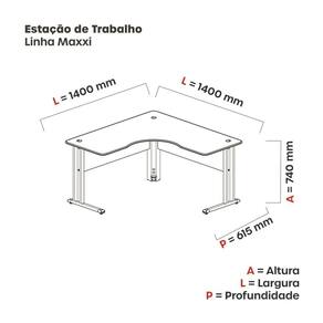 As estações de atendimento e telemarketing são fabricadas com tampos e retaguardas em MDPBP na e variadas cores, pés estruturais com perfis de acabamento nas cores que combinam com seu gosto. As estações possibilitam montagens diversas, propiciando comodidade e produtividade na execução das tarefas diárias, desempenhando importante papel na organização e eficiência de sua empresa. Acabamento da Base: Pintura Acabamento do Tampo: Melamínico Ambiente Principal: Escritório Complexidade da Montagem: Baixa: pode ser montado por uma pessoa sozinha Cor: Walnut/Preto Cor da Base: Marrom Cor do Produto: Walnut/Preto Cor do Tampo: Marrom Design da Base: 4 Pés Dobrável: Não Escala de Brilho: Semi-Fosco Espessura do Tampo: 15 Extensível: Não Formato: Em L Itens Inclusos: 1 Estação de Trabalho, Manual de Montagem, Kit Ferragens Largura Frontal: 140 cm Largura Lateral: 140 cm Linha ou Coleção: Maxxi Manual de Montagem e Instalação: https://cdn2.madeiramadeira.com.br/atributo/pandin/1336199-11-3306-0041-manual-montagem-estacao-de-trabalho.pdf Material da Base: Aço Material do Tampo: MDP Material Principal: MDP Medida da Base (A x L x P): 140 Medida da Mesa (A x L x P): 140 Medida do Tampo (L x C x E): 61,5cm x 140cm x 0,15cm Necessita Montagem: Sim Origem do Produto: Nacional Peso: 27.45 Possui Passa Cabos: Não Possui Portas: Não Possui prateleira: Não Possui Prateleiras: Não Possui Suporte para Teclado: Não Possui Vidro: Não Quantidade de Lugares: 01 Recomendações de Uso, Manutenção e Limpeza: Utilizar um pano levemente umedecido com água, para finalizar utilizar um pano seco. Sapatas Niveladoras: Sim Sistema de Montagem: Parafusos Suporta Até (kg): 15