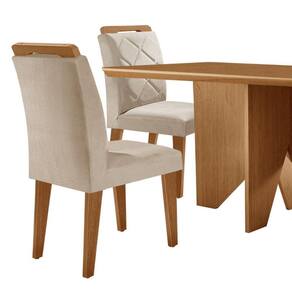 Mesa Evora 120 Mdf Com 4 Cadeiras Melissa Veludo Creme/naturalle/naturalle Mesa de Jantar Evora 120cm MDF Canto copo e 4 Cadeiras Melissa A Mesa Evora com as Cadeiras Melissa e uma combinacao que exala elegancia e sofisticacao. A mesa se destaca por sua base unica, que traz um ar de modernidade ao ambiente. As Cadeiras Melissa complementam o conjunto com assentos e encostos estofados, proporcionando um conforto excepcional para longos periodos de uso. Um detalhe especial sao os bordados no encosto das cadeiras, que acrescentam um charme extra e dao um toque final refinado ao espaco. Essa combinacao e ideal para criar uma atmosfera acolhedora e convidativa para seu lar.