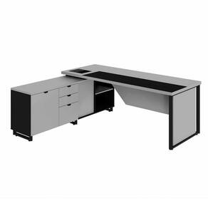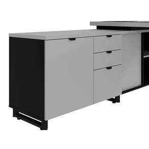 Mesa Executiva 180cm com Armário Lateral e Caixa de Tomadas Corporate Cinza Sagrado / Preto