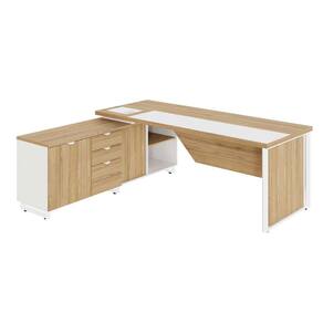 Mesa Executiva 180cm com Armário Lateral e Caixa de Tomadas Corporate Macadâmia / Branco - Marrom