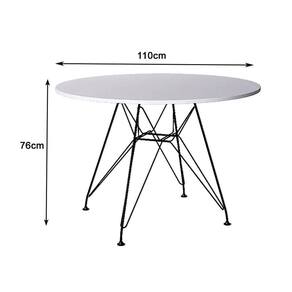 Mesa Eames Ferro Preto Tampo Redondo Madeira Branco 110cmA Mesa Eiffel é a escolha ideal para deixar sua casa muito mais bonita e renovada. Essa mesa tem em sua estrutura materiais de altíssima qualidade, que proporciona muito mais resistência, mesmo com o passar dos anos. Ela tem formato redondo e possui espaço para 4 lugares, o que é ideal para um jantar em família. A mesa é versátil e combina com vários tipos de decoração, o que dá mais praticidade em casa.Tipo: MesaModelo: EamesCor: Tampo Redondo BrancoDimensões do Produto- Altura: 76cm- Diâmetro: 110cmCaracterísticas- Base: Ferro entrelaçado- Cor da Base: Preto- Tampo de Madeira (mdp) com espessura de 20mm- Necessita Montagem? Parcialmente (Produto Entregue Montado Parcialmente)Mesa Eames Ferro Preto Tampo Redondo Madeira Branco 110cm