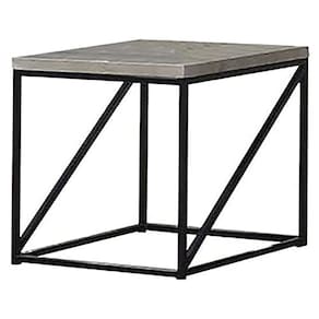 Mesa final minimalista de estilo industrial Benzara com tampo de madeira e base metálica, cinza