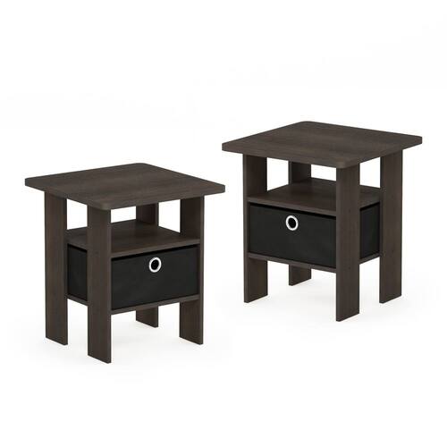 Furinno Conjunto de 2 mesas de canto Andrey / mesa lateral / mesa de cabeceira / mesa de cabeceira com gaveta de lixo, marrom escuro/preto