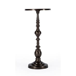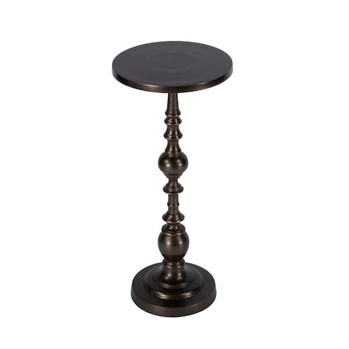 Uma sofisticada mesa final de pedestal de estilo tradicional com um lindo acabamento em bronze, feita de alumínio leve, esta mesa traz um apelo glamoroso a qualquer ambiente. Seu material durável e livre de manutenção o torna uma adição fácil ao seu espaço; basta limpar com um pano seco. Capacidade máxima de peso: 20 libras. A foto pode diferir ligeiramente do item real em termos de cor/acabamento devido à iluminação durante a sessão de fotos ou à exibição do monitor.