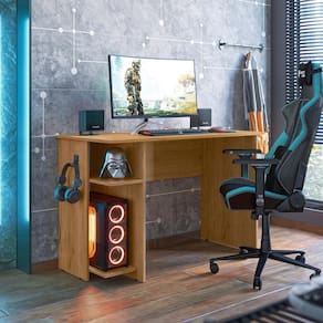 Características: Estrutura em MDP Acabamento em Pintura UV Atóxica Possui uma prateleira elevada para o CPU e outras duas para organização Suporte para fone de ouvido *Não acompanha cadeira gamer.