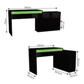 A Mesa Gamer B24 Preto e Verde da Emovell foi desenvolvida para quem busca desempenho, organização e versatilidade no setup. Com design moderno e detalhes em verde, proporciona um visual marcante para ambientes gamer, home office ou estudo.