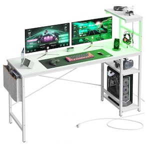 Mesa Gamer de Fibra de Carbono 3D 61" 154 cm com Prateleiras Reversíveis de 4 Níveis, Gancho para Fone de Ouvido e Bolsa de Armazenamento