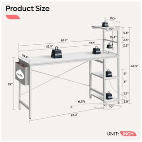 A mesa também possui prateleiras ajustáveis, que podem ser instaladas no lado esquerdo ou direito, conforme a sua preferência. Essas prateleiras oferecem muito espaço para seus equipamentos de jogo, e a bolsa lateral é perfeita para guardar cabos e pequenos itens. Um gancho para fones de ouvido é incluído, ideal para manter seus acessórios organizados.
