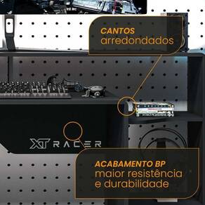 A mesa Gamer e Escritório XT Racer Control by Politorno foi projetada especificamente para oferecer conforto e praticidade aos usuários, além de contar com um design futurista com traços marcantes. O móvel oferece uma prateleira especialmente projetada para elevar o monitor a uma altura ergonômica, alinhada com a visão, o que evita dores e lesões decorrentes de posições inadequadas. A mesa é disponível na cor preta com adesivo XT Racer na cor vermelha com branco, conta também com quatro prateleiras com acabamentos arredondados, projetadas para ajudar a manter a organização dos equipamentos e materiais, bem como, deixar o setup personalizado do seu jeito ideal para gamers e profissionais que buscam aliar estética e funcionalidade em um único produto. A XT Racer é uma marca renomada e com uma extensa experiência na linha de Cadeiras Gamer/Office. Já conquistou o prêmio como a Cadeira Gamer mais desejada do Brasil. Em cima deste ?know how?, criamos e desenvolvemos uma linha exclusiva com um design inovador de Mesas, Estantes e Hacks Gamer e Escritório, para que nossos clientes tenham uma experiência única.