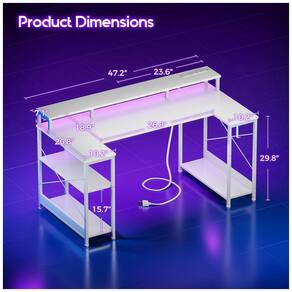 Ficha Técnica Especificação Detalhes Marca ODK Formato Em U (retangular expandido) Dimensões (P x L x A) 68 cm x 122 cm x 88,5 cm Diagonal da superfície 145 cm Número de gavetas 1 Número de prateleiras 2 Capacidade de armazenamento 225 litros Material do tampo Madeira engenheirada (fibra de carbono branco) Material da base Metal e plástica composta Luzes LED 10 cores, 20 modos dinâmicos Tomadas 3 AC + 2 USB Montagem Requerida (ferramentas incluídas, 30 min) Tipo de fixação Tabletop Voltagem 110 volts Cor Branco Peso 18 kg Marca: Não Informado
