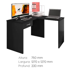 Sua montagem pode ser realizada tanto à esquerda quanto à direita das mesas, proporcionando flexibilidade de acordo com a disposição do ambiente. Além disso, este produto é prático e versátil, adicionando beleza tanto ao produto quanto ao espaço em que é colocado. Produto Montado: Sim Acabamento da Gaveta: Pintura UV Acabamento dos Pés: Pintura Acompanha Manual de Instalação: Sim Altura dos Pés: cm Ambiente Principal: Escritório codigo_ean: 7898518260275 Complexidade da Montagem: Baixa: pode ser montado por uma pessoa sozinha Cor: Preto Black Cor da Base: Preto Cor do Tampo: Preto Dobrável: Não Espessura do Tampo: 18 mm Formato: Em L Gaveta com Chave: Não Itens Inclusos: Escrivaninha e Manual de Montagem Largura do Segundo Lado: 117 cm Largura Frontal: 38 cm Largura Lateral: 54 cm Linha ou Coleção: Gamer Manual de Especificação Técnica: https://product-hub-prd.madeiramadeira.com.br/769659/documents/a61eeebd-d829-4ee3-bcf1-7bdb3fd46f94esadrx900040508comextensor.pdf Manual de Montagem e Instalação: https://product-hub-prd.madeiramadeira.com.br/769659/documents/5f1ca623-97b3-4cde-8ea8-cefa400f6cf4esadrx900040508comextensor.pdf Marca: Espresso Móveis Material da Gaveta: MDP Material do Puxador da Gaveta: PVC Material do Tampo: MDP Material Principal: MDP Modelo Infantil: Não Montagem Flex: Não, só é possível a montagem do produto conforme imagem do anúncio. Necessita Montagem: Sim Origem do Produto: Nacional Pés com Regulagem de Altura: Não Peso: 27,5 kg Possui Acabamento na Parte de Trás: Sim Possui Borda Arredondada: Não Possui Espelhos: Não Possui Gaveta para Pasta Suspensa: Não Possui Passa Cabos: Não Possui Pés: 10 Possui suporte para CPU: Sim Possui Suporte para Teclado: Não Possui Vidro: Não Quantidade de Gavetas: 01 Gaveta Recomendações de Uso, Manutenção e Limpeza: Limpeza apenas com pano úmido. Não utilizar produtos químicos ou abrasivos. Sistema de Montagem: https://product-hub-prd.madeiramadeira.com.br/769659/documents/e1e6daf9-6277-41c1-bf2d-63f96852b488esadrx900040508comextensor.pdf Suporta Até (kg): 25 kg Tipo de Puxador da Gaveta: Externo