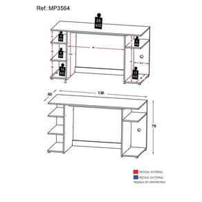 Altura: 75cm - Largura: 136cm - Profundidade: 60cm