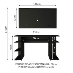 Itens inclusos: - Uma (1) Mesa Gamer com 75 cm de altura, 136 cm de largura e 60 cm de profundidade - Um (1) Painel com 72 cm de altura, 136 cm de largura e 2 cm de profundidade