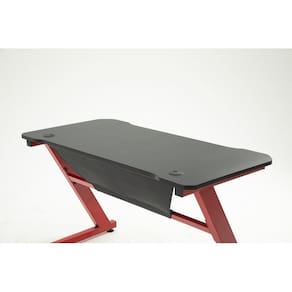 A mesa foi projetada para suportar os melhores setup do mercado, oferecendo resistência com a sua base em metal vermelho e tampo em MDF revestido com melamina preta.