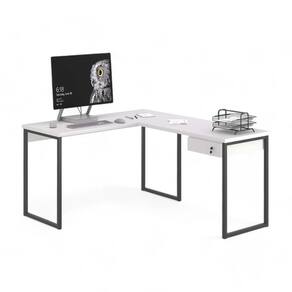 Mesa Home Office Escrivaninha L Industriale Branco com Gaveteiro