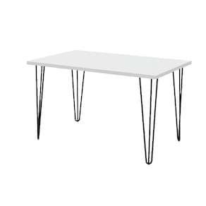 Leve um toque de estilo industrial e contemporâneo para seus ambientes com esta elegante mesa hairpin. Com dimensões de 1,30m x 0,82m, ela é ideal para salas de jantar, escritórios ou espaços de convivência que buscam sofisticação e funcionalidade.