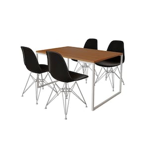 Mesa Industrial Base Ferro Branco Tampo 137x90 Canela 4 Cadeiras Ferro Branco Assento Preto - Marrom