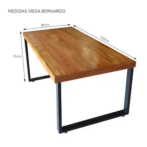 Mesa Industrial Bernardo Madeira Maciça C/ Ferragem Preta 1,50m - Marrom