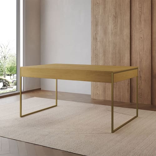 Características Tipo: Mesa de Jantar Modelo: Filadélfia Cor da Base: Dourado Cor do Tampo: Freijó Estrutura: Base em ferro pintado