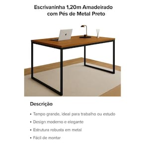 O tampo retangular, com acabamento fosco e linhas retas, transmite elegância e combina facilmente com qualquer estilo de decoração, desde ambientes industriais até espaços contemporâneos.