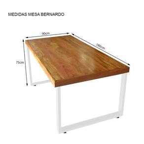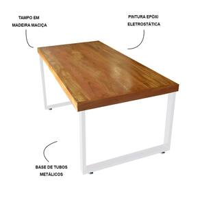 Mesa Industrial para Ambiente Biofílico Madeira Maciça Bernardo com Ferragem 1,80m Branco - Marrom