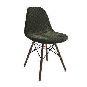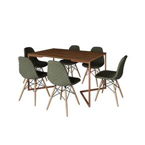 Mesa Industrial Retangular Amêndoa Base V Cobre 137x90cm com 6 Cadeiras Madeira Estofadas Verdes - Marrom