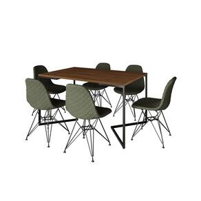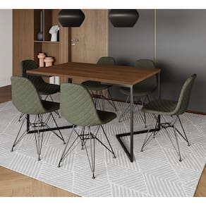 A mesa de jantar é um dos poucos móveis que efetivamente reúne a família para saborear um bom prato ao lado das pessoas que mais ama. E para garantir que o seu ambiente fique impecável, conte com a Mesa De Jantar Industrial. As laterais vazadas, sua forma reta e sua base em V conferem sofisticação e ótimo aproveitamento no cômodo.Tipo: ConjuntoModelo: Industrial Base VCor Tampo Mesa: AmêndoaCor Base Mesa: PretoCor Assento Cadeira: VerdeCor base Cadeira: PretoMedidas da Mesa:Altura: 78cmComprimento: 90cmLargura: 137cmMedidas da Cadeira:Altura: 85cmLargura: 47cmComprimento: 37cmATENÇÃOIMAGENS MERAMENTE ILUSTRATIVAS REALIZADO EDIÇÃO, PODENDO HAVER UMA PEQUENA VARIAÇÃO DE COR DEPENDENDO DE CADA TELA OU MONITOR.