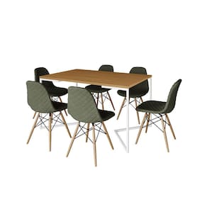 A mesa de jantar é um dos poucos móveis que efetivamente reúne a família para saborear um bom prato ao lado das pessoas que mais ama. E para garantir que o seu ambiente fique impecável, conte com a Mesa De Jantar Industrial. As laterais vazadas, sua forma reta e sua base em V conferem sofisticação e ótimo aproveitamento no cômodo.Tipo: ConjuntoModelo: Industrial Base VCor Tampo Mesa: CanelaCor Base Mesa: BrancoCor Assento Cadeira: Verde Cor base Cadeira: Madeira Medidas da Mesa:Altura: 78cmComprimento: 90cmLargura: 137cmMedidas da Cadeira:Altura: 85cmLargura: 47cmComprimento: 37cmATENÇÃOIMAGENS MERAMENTE ILUSTRATIVAS REALIZADO EDIÇÃO, PODENDO HAVER UMA PEQUENA VARIAÇÃO DE COR DEPENDENDO DE CADA TELA OU MONITOR.