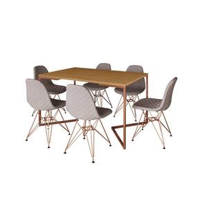 A mesa de jantar é um dos poucos móveis que efetivamente reúne a família para saborear um bom prato ao lado das pessoas que mais ama. E para garantir que o seu ambiente fique impecável, conte com a Mesa De Jantar Industrial. As laterais vazadas, sua forma reta e sua base em V conferem sofisticação e ótimo aproveitamento no cômodo.Tipo: ConjuntoModelo: Industrial Base VCor Tampo Mesa: CanelaCor Base Mesa: CobreCor Assento Cadeira: Nude MédioCor Base Cadeira: CobreMedidas da Mesa:Altura: 78cmComprimento: 90cmLargura: 137cmMedidas da Cadeira:Altura: 85cmLargura: 47cmComprimento: 37cmATENÇÃOIMAGENS MERAMENTE ILUSTRATIVAS REALIZADO EDIÇÃO, PODENDO HAVER UMA PEQUENA VARIAÇÃO DE COR DEPENDENDO DE CADA TELA OU MONITOR.