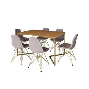 A mesa de jantar é um dos poucos móveis que efetivamente reúne a família para saborear um bom prato ao lado das pessoas que mais ama. E para garantir que o seu ambiente fique impecável, conte com a Mesa De Jantar Industrial. As laterais vazadas, sua forma reta e sua base em V conferem sofisticação e ótimo aproveitamento no cômodo.Tipo: ConjuntoModelo: Industrial Base VCor Tampo Mesa: CanelaCor Base Mesa: DouradoCor Assento Cadeira: Nude MédioCor Base Cadeira: DouradoMedidas da Mesa:Altura: 78cmComprimento: 90cmLargura: 137cmMedidas da Cadeira:Altura: 85cmLargura: 47cmComprimento: 37cmATENÇÃOIMAGENS MERAMENTE ILUSTRATIVAS REALIZADO EDIÇÃO, PODENDO HAVER UMA PEQUENA VARIAÇÃO DE COR DEPENDENDO DE CADA TELA OU MONITOR.