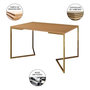 A mesa de jantar é um dos poucos móveis que efetivamente reúne a família para saborear um bom prato ao lado das pessoas que mais ama. E para garantir que o seu ambiente fique impecável, conte com a Mesa De Jantar Industrial. As laterais vazadas, sua forma reta e sua base em V conferem sofisticação e ótimo aproveitamento no cômodo.Tipo: ConjuntoModelo: Industrial Base VCor Tampo Mesa: CanelaCor Base Mesa: DouradoCor Assento Cadeira: VermelhoBase Cadeira: MadeiraMedidas da Mesa:Altura: 78cmComprimento: 90cmLargura: 137cmMedidas da Cadeira:Altura: 85cmLargura: 47cmComprimento: 37cmATENÇÃOIMAGENS MERAMENTE ILUSTRATIVAS REALIZADO EDIÇÃO, PODENDO HAVER UMA PEQUENA VARIAÇÃO DE COR DEPENDENDO DE CADA TELA OU MONITOR.