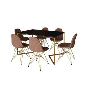 Mesa Industrial Retangular Preta Base V Dourada 137x90cm 6 Cadeiras Estofadas Caramelo Dourada - Preto