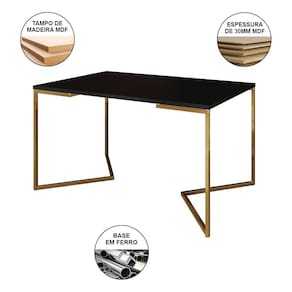 A mesa de jantar é um dos poucos móveis que efetivamente reúne a família para saborear um bom prato ao lado das pessoas que mais ama. E para garantir que o seu ambiente fique impecável, conte com a Mesa De Jantar Industrial. As laterais vazadas, sua forma reta e sua base em V conferem sofisticação e ótimo aproveitamento no cômodo.Tipo: ConjuntoModelo: Industrial Base VCor Tampo Mesa: PretoCor Base Mesa: DouradoCor Assento Cadeira: CarameloCor Base Cadeira: DouradoMedidas da Mesa:Altura: 78cmComprimento: 90cmLargura: 137cmMedidas da Cadeira:Altura: 85cmLargura: 47cmComprimento: 37cmATENÇÃOIMAGENS MERAMENTE ILUSTRATIVAS REALIZADO EDIÇÃO, PODENDO HAVER UMA PEQUENA VARIAÇÃO DE COR DEPENDENDO DE CADA TELA OU MONITOR.