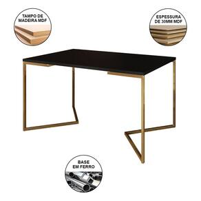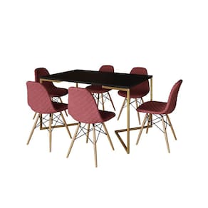 Mesa Industrial Retangular Preta Base V Dourada 137x90cm com 6 Cadeiras Estofadas Vermelhas Madeira - Preto