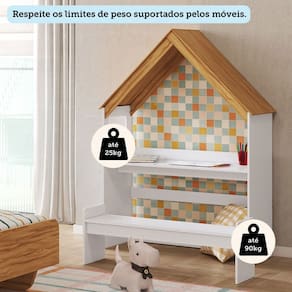 - Peso máximo de 25kg no tampo e 90kg no banco.