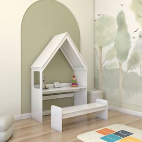 O(a) Mesa Infantil Casinha Montessoriana com Banco 100% Mdf Branco Brilho - Loja é produzido em 100% MDF na escala de brilho Brilhante, e possui um grau de dificuldade de montagem: Médio.