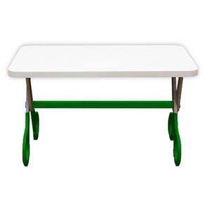 Mesa Infantil Tesoura Verde Tampo Branco Retangular Base Temática Para Estudos E Desenhos Mobília Decor Mesinha Infantil Pé Tesoura Mesa infantil prática e estável, com base em formato de tesoura em MDF e tampo Branco TX, ideal para atividades, desenhos e leitura em quartos, brinquedotecas e escolinhas.? Medidas e capacidade: 53 cm de altura; 90 x 50 cm; 18 kg; suporta até 10 kg.?